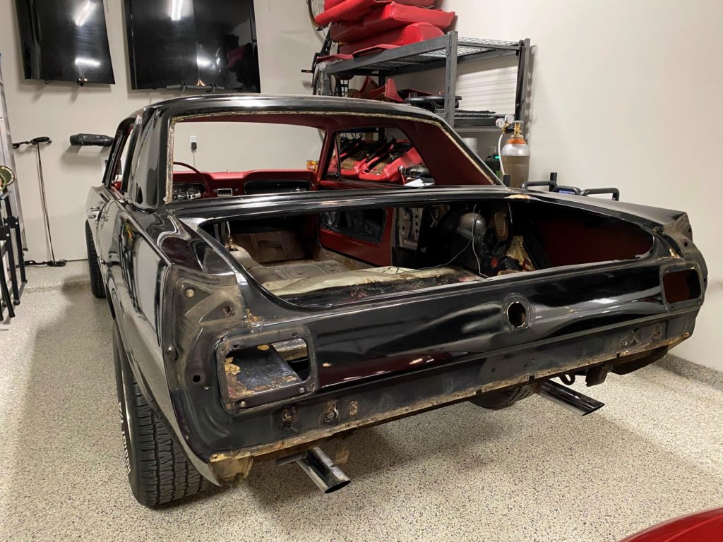 Armed with a cheap “10 in 1 Trim Tool” from Amazon and a dozen YouTube videos I started working at the trim around the rear window. On these old Mustangs the chrome trim around both the rear glass and windshield is held in by metal clips that are notoriously difficult to release and the trim itself has the structural integrity of used aluminum foil.