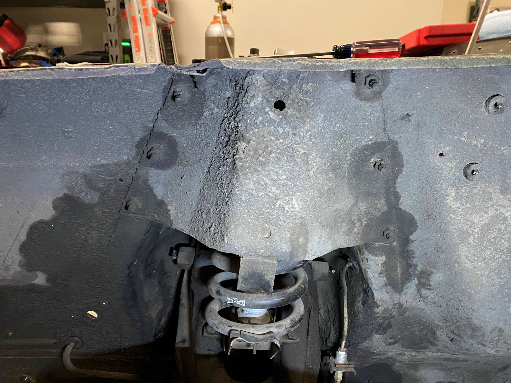Despite many applications of PB Blaster over the past few weeks I still had to break out the impact driver and a breaker bar to free the outer shock tower braces. I’m confident they had never been removed from the car following initial assembly. I plan to delete the shock towers as part of this project so these will not be getting re-installed.