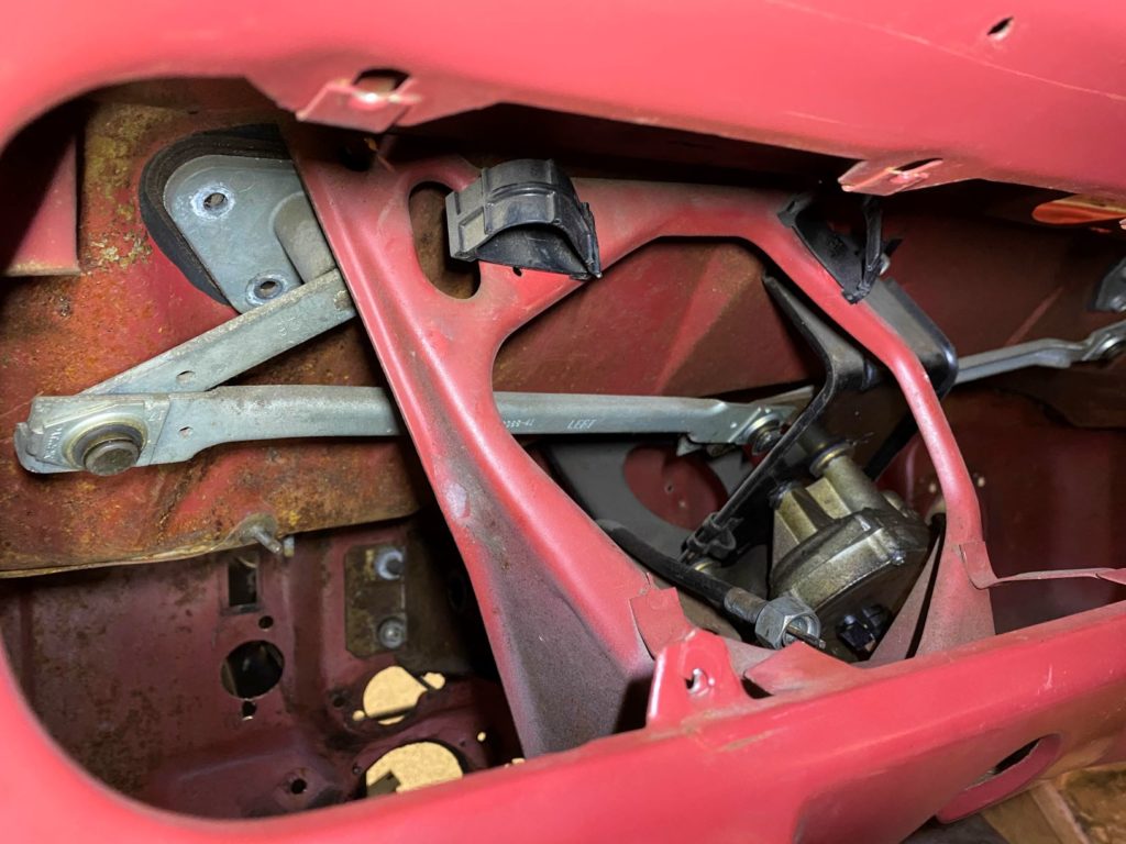 With those bezels removed it was time to get back under the dash to remove a dozen or so bolts holing the wiper motor bracket to the underside of the dash and the actuation arms to the cowl. One of the bolts in the cowl snapped in half but I’m planning on replacing the cowl anyway so it won’t be an issue.