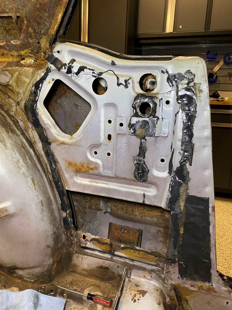 The last item on the list for the day was the glass and window mechanisms in the quarter panels. The removal procedure is quite tedious and you have to be exceptionally careful not to scratch the glass as absolutely everything else (regulator, track plate, window stops) has to come out before the glass can be removed.