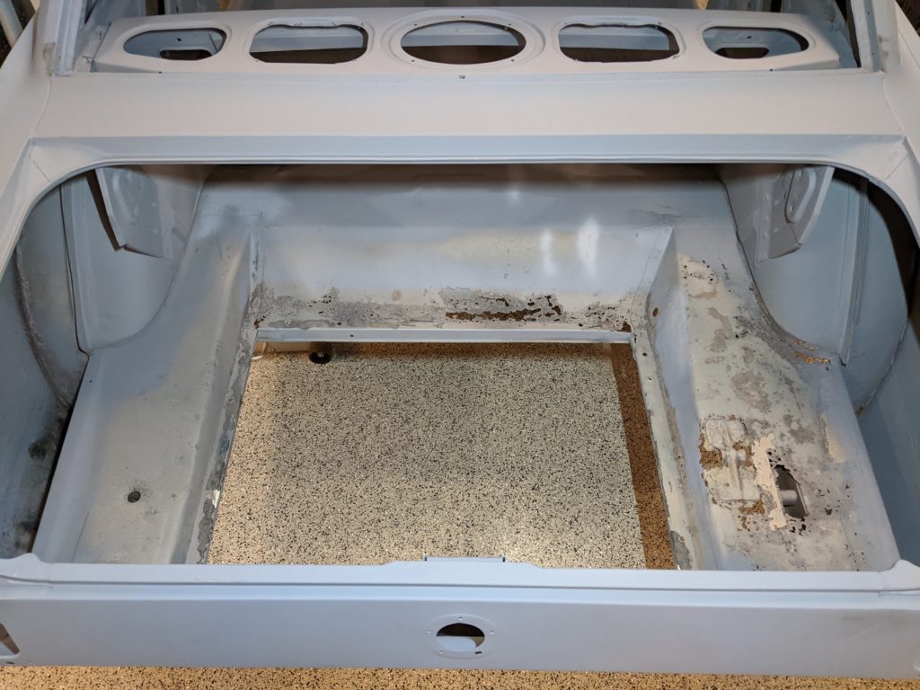 I started by taking aim at the passenger side trunk floor, it seemed like the most degraded section of metal would likely be the easiest to remove.