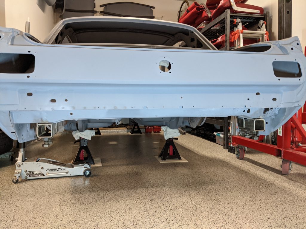 The last piece to remove was the rear trunk brace. Though it didn’t look too bad after being covered in primer most of the panel was rotted through.