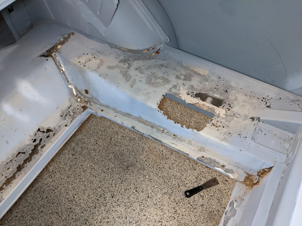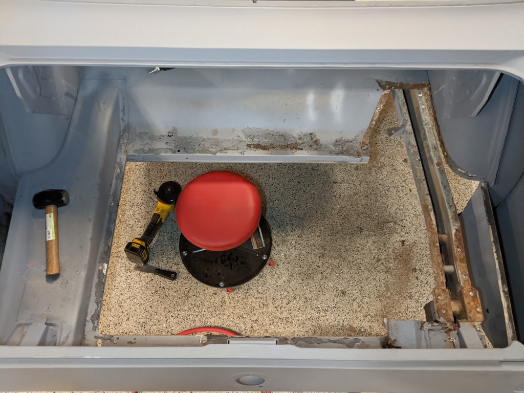 The primary reason for this entire restoration finally arrived – addressing the rust. I decided to start with the trunk since it was both the most severely afflicted and the least likely to be visible at the end of the project, the perfect place to make inevitable mistakes as I learn how to do this kind of work.