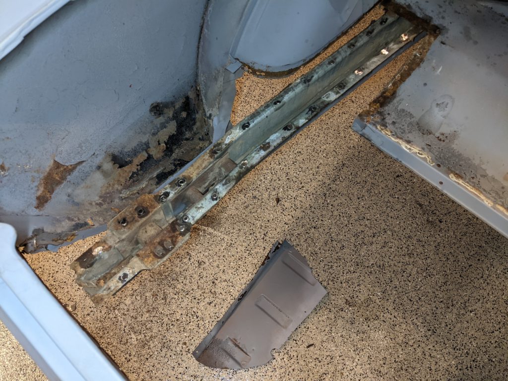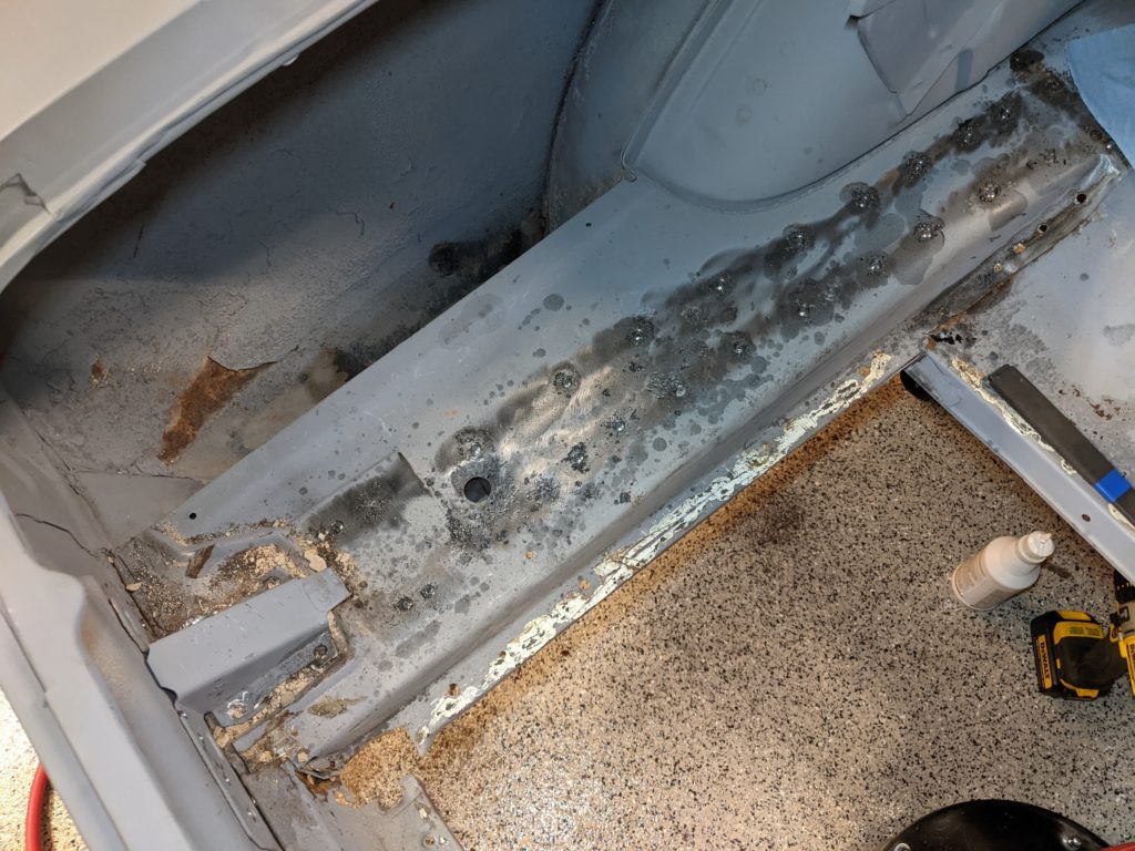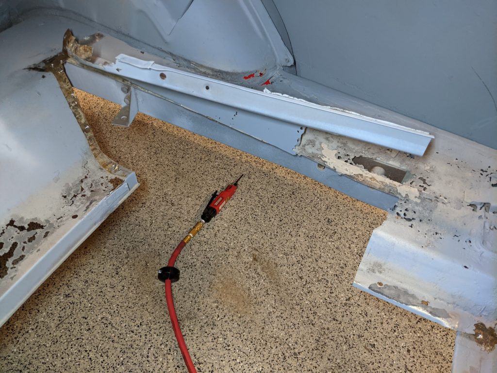 Time to rinse and repeat on the driver’s side, though the order of operations was slightly different due to less pervasive rust damage and me testing out alternative angles of attack.