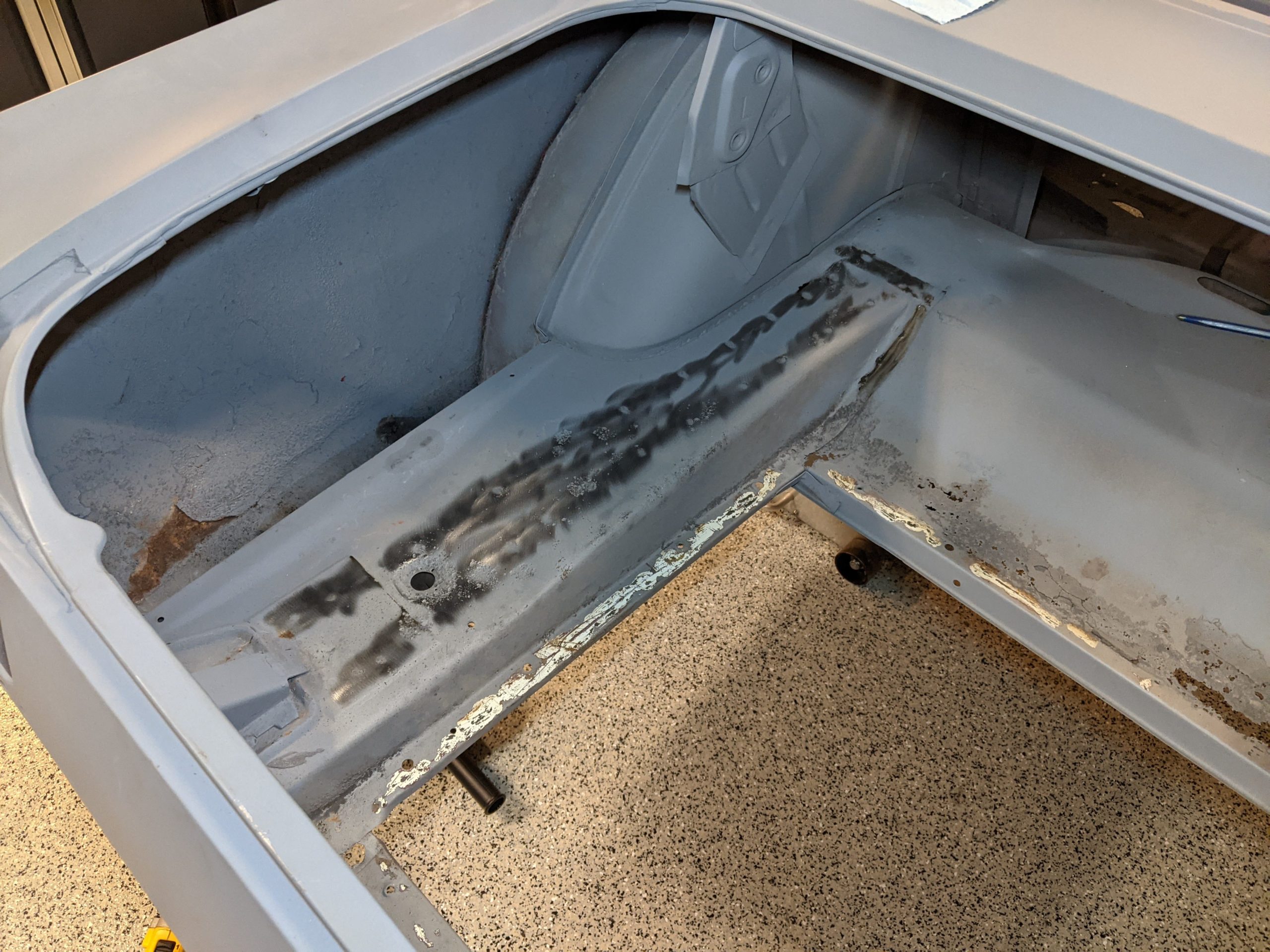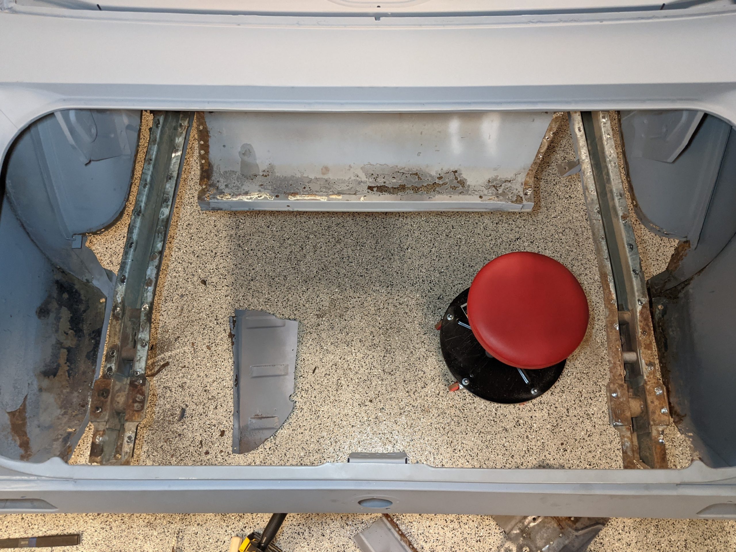I started by taking aim at the passenger side trunk floor, it seemed like the most degraded section of metal would likely be the easiest to remove.