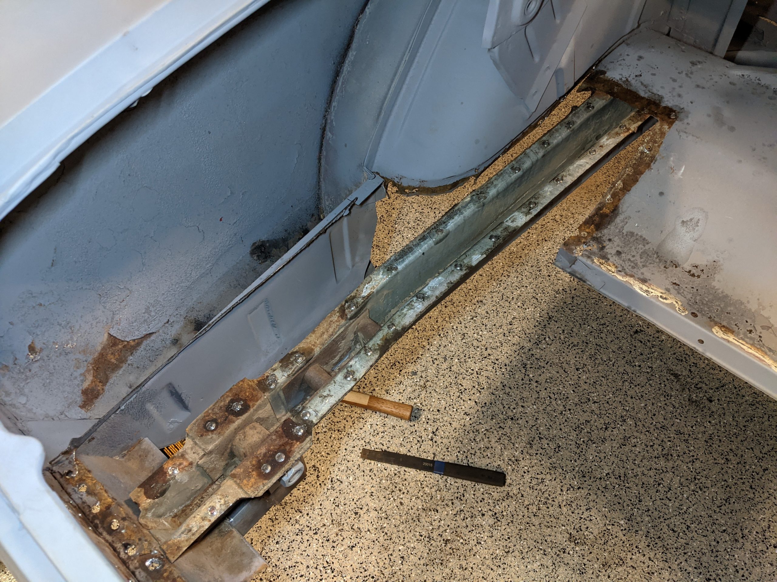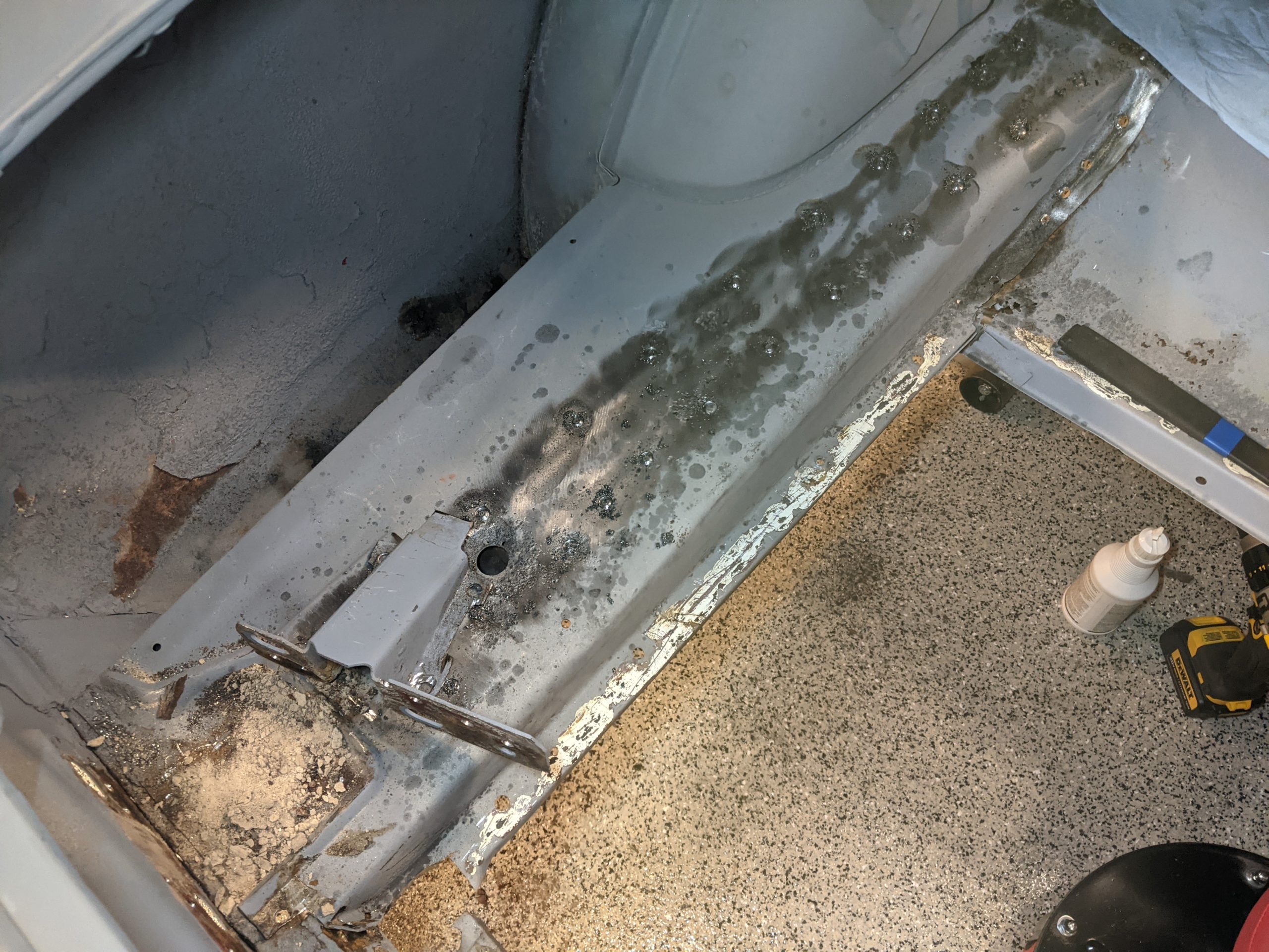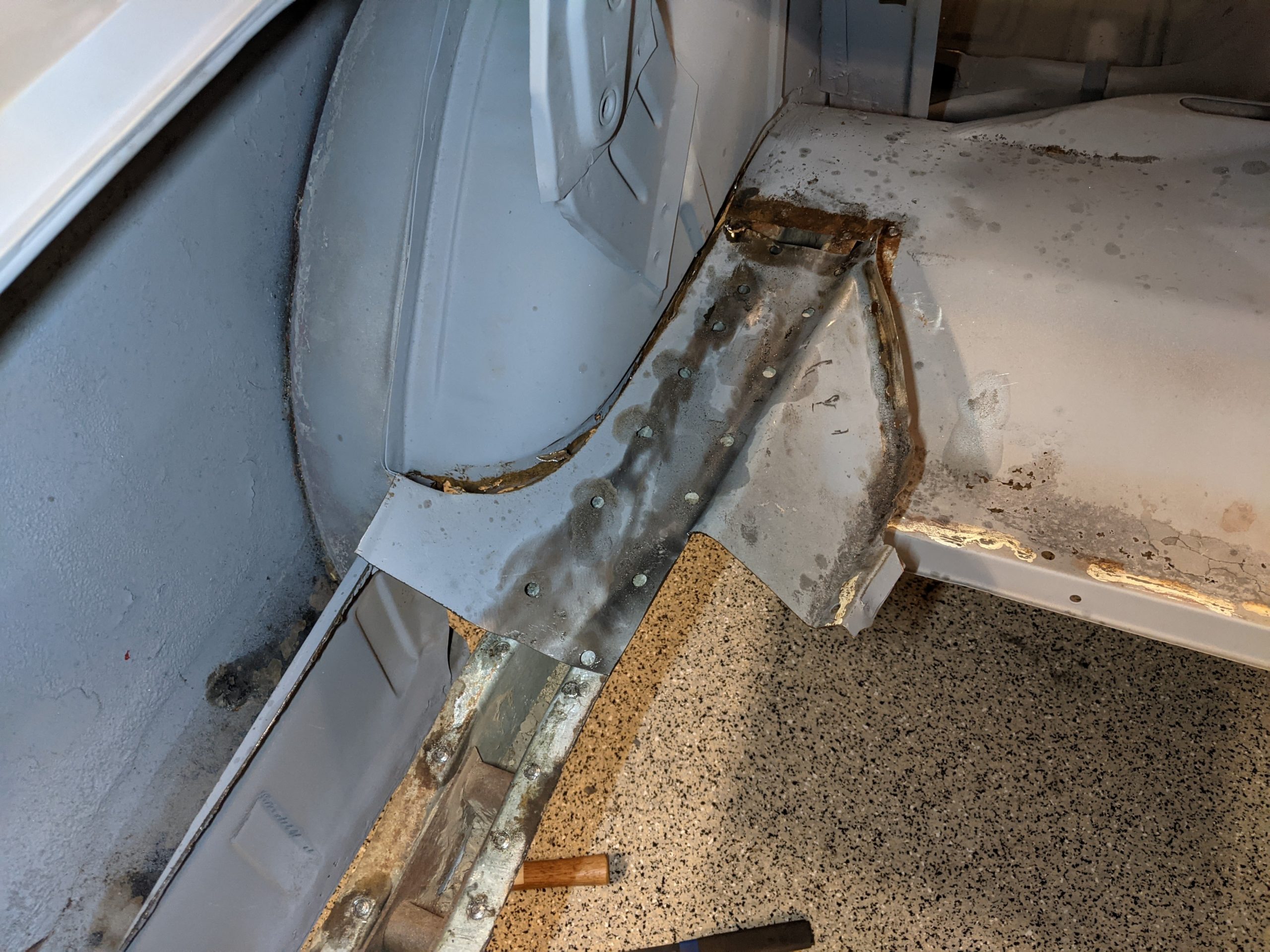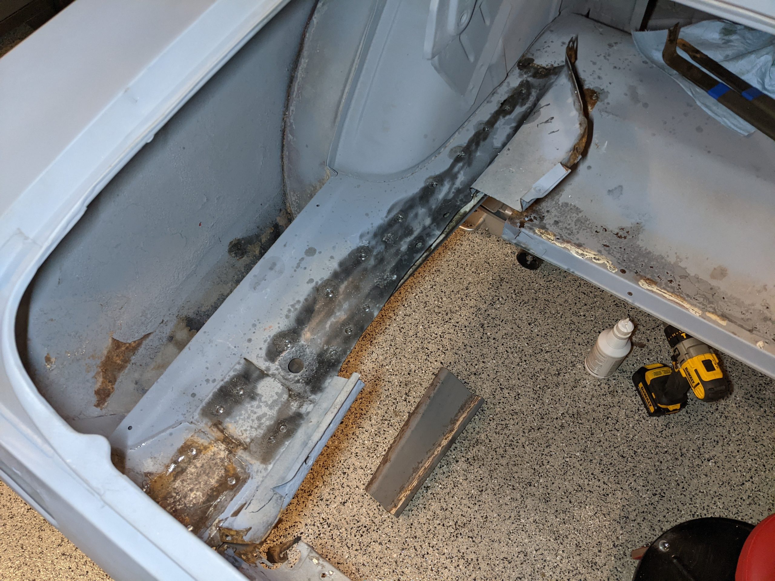 Time to rinse and repeat on the driver’s side, though the order of operations was slightly different due to less pervasive rust damage and me testing out alternative angles of attack.