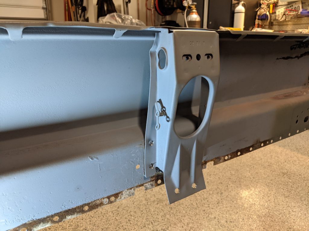 The replacement trunk floor that I ordered came as a fully assembled piece, making it rather large and unwieldy. So much so that there was going to be no way to get it into the car without removing the tail panel. There were some areas on the tail panel that needed attention anyway so this wasn’t a horrible inconvenience. Started out by removing the trunk latch bracket on the inside of the tail panel.