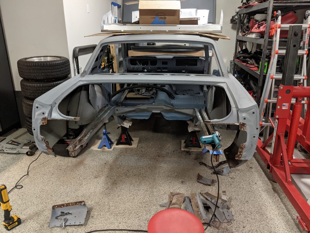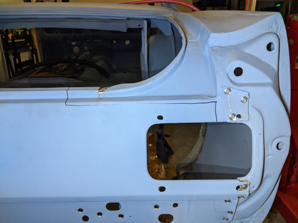 In the next photo you’ll notice some lines in Sharpie across the top of there the tail panel meets the quarter panel extension. The top of the tail panel was actually brazed to those extensions from the factory, so removing that in a way that kept everything intact was going to prove difficult. I priced out replacement tail panels online and they weren’t too bad so I decided to save myself some effort and go ahead and cut those sections of the tail panel so that it would be easier to remove the remaining sections.
