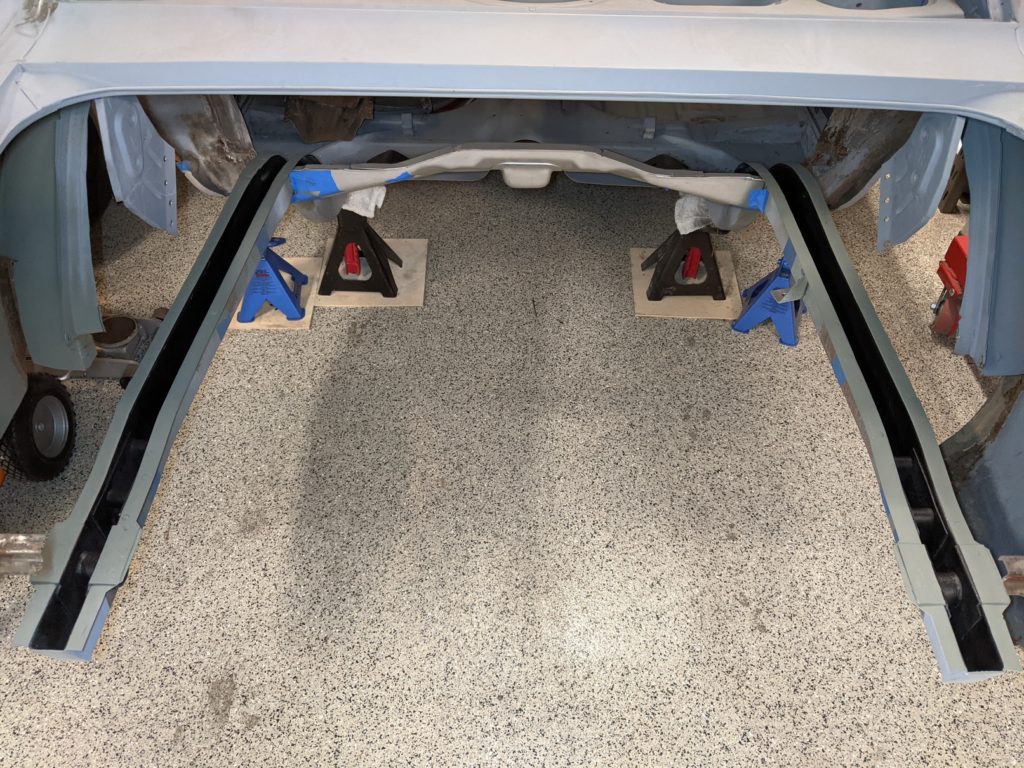 I was carefully to tape off the flanges where the frame rails and the trunk floor would be welded together.