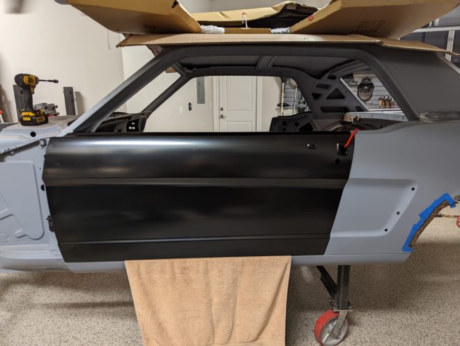 The doors came in from CJ Pony Parts in a matter of days, largely unscathed by their cross-country excursion. The first order of business before hanging the new doors was to clean up the backing plates that sit on the interior side of the car’s door jams. Never painted, they were looking a little worse […]
