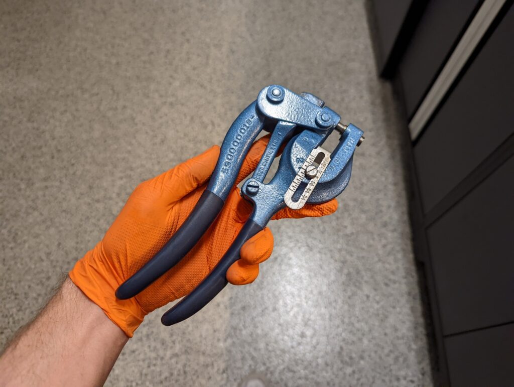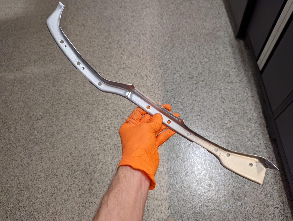 It took me less than a minute to punch out all of the necessary holes for the plug welds, copying the locations from the original piece. First use and I’m already a big fan.