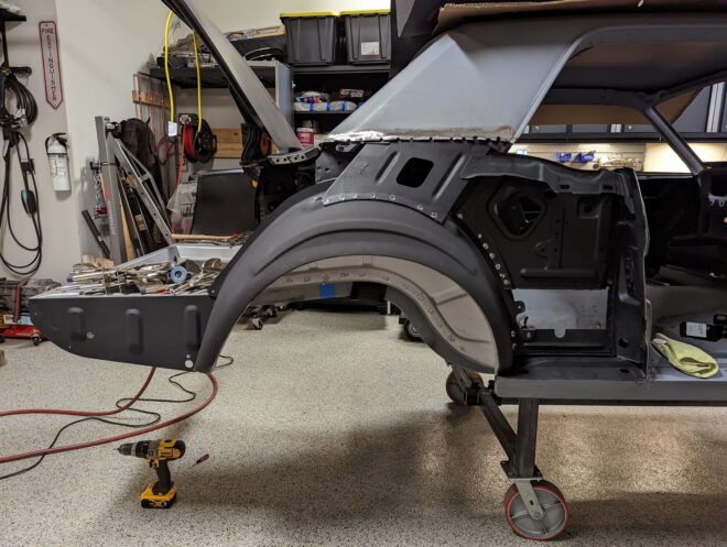 The first order of business was getting the outer flanges of the wheelhouses to better conform to the shape of the corresponding flanges on the quarter panels. I had split the driver side outer wheelhouse a while back, so I was able to use reversed clamps to force the outer flange of the wheelhouse out […]