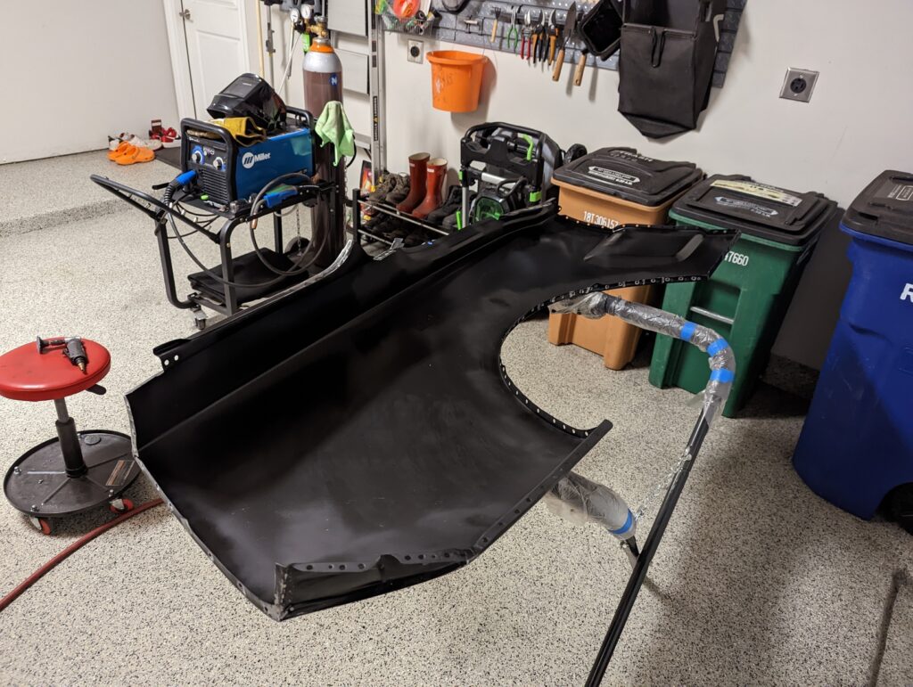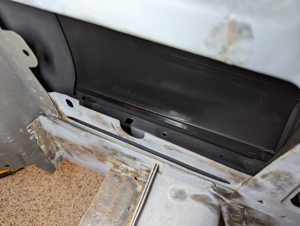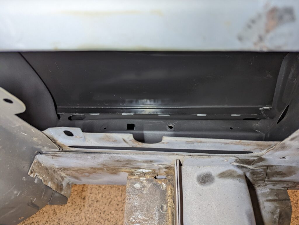 Much like the passenger side the adventure started with cleaning up and painting any exposed bare metal that would no longer be accessible.