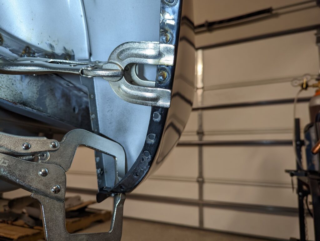 With those tabs in place all that was left was the tail light extension. After some last minute adjustments for fit with the trunk lid and additional sheet metal screw to get the panels as tight as possible the last set of welds was underway.