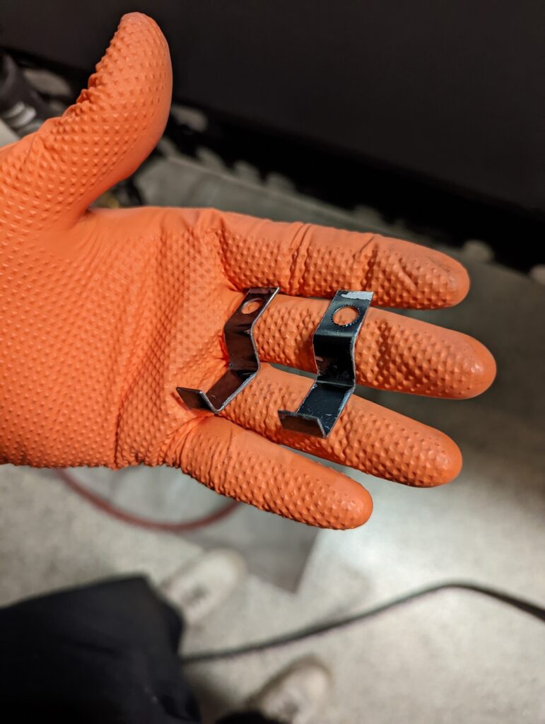 After throwing together my rendition of the original tabs I got to do some upside-down welding within the trunk. Hopefully no one sticks their head in there and looks straight up to inspect the aesthetics of the plug welds.