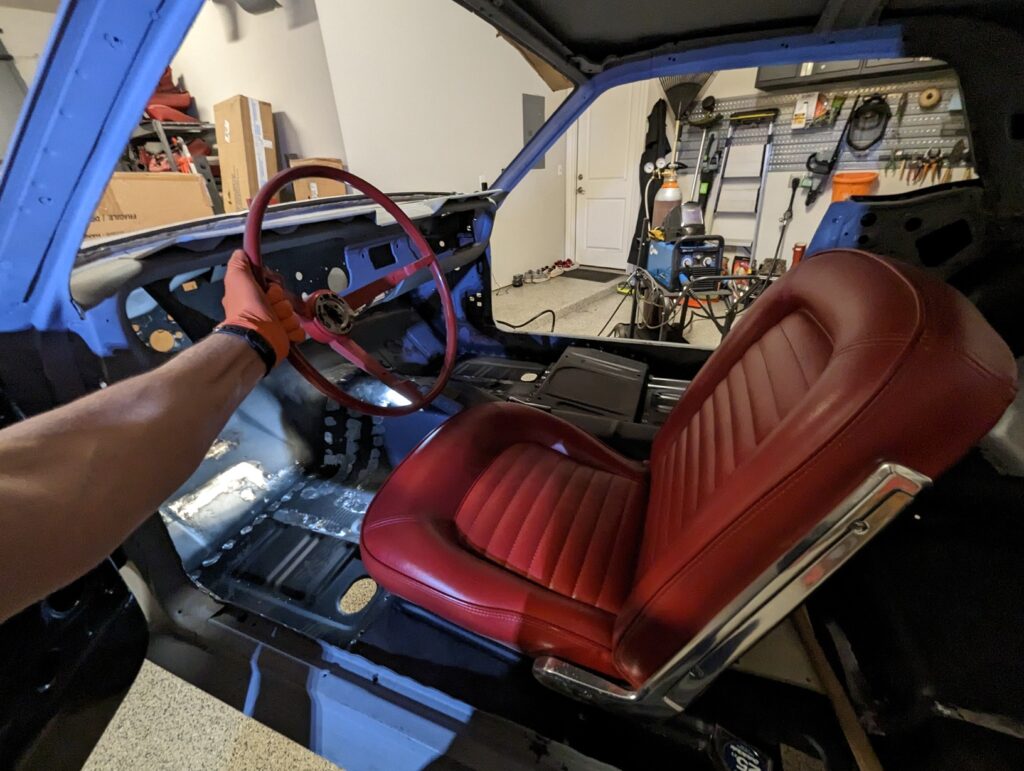 The completion of the floor install meant that the seat risers were up next! I dropped them in place and stood on them to try and get them to flex into shape. On the driver’s side I still ended up with a gap at the back right corner that was just large enough for me to slide my pinky under.