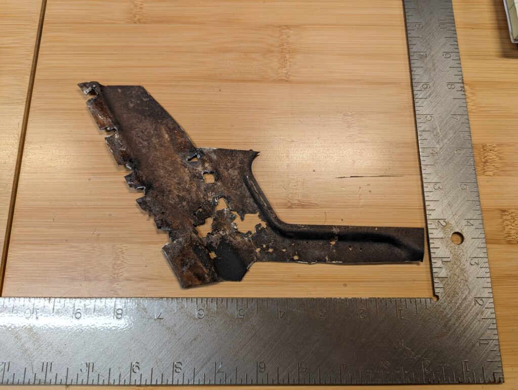 The first step was to cut out the rusted area so that I could take measurements while creating it in CAD.