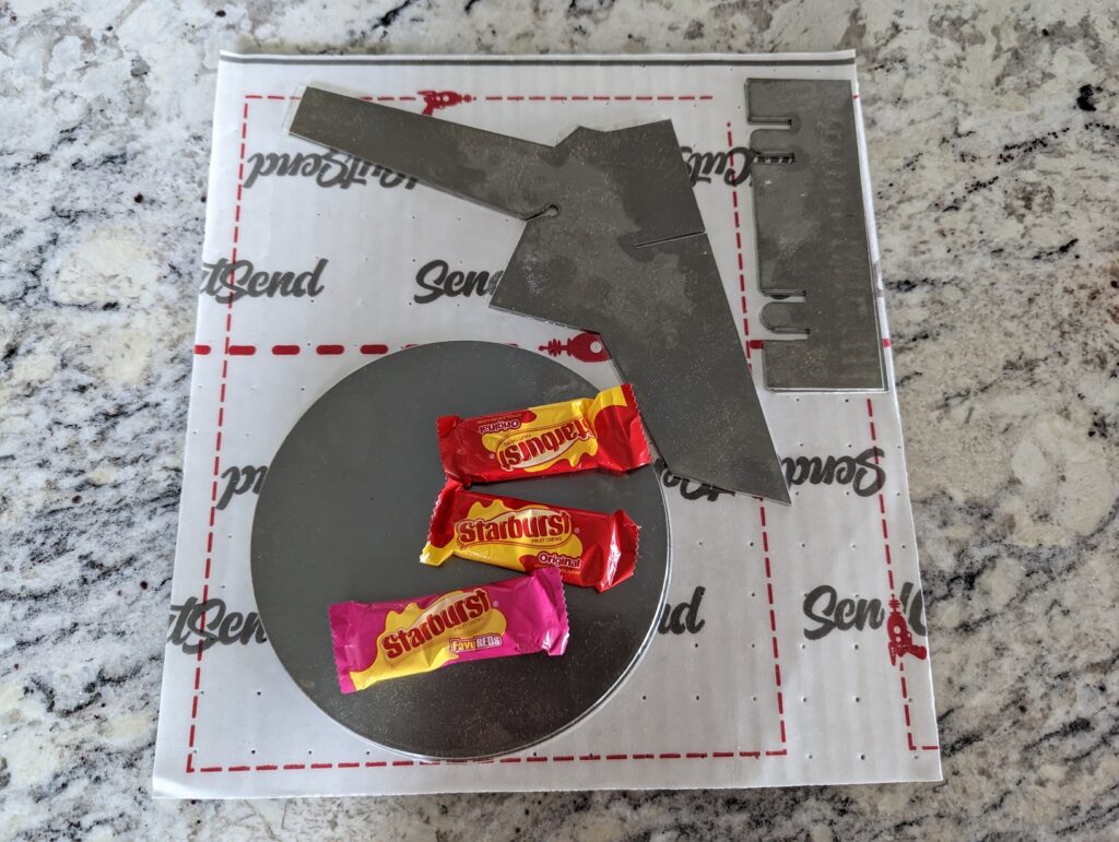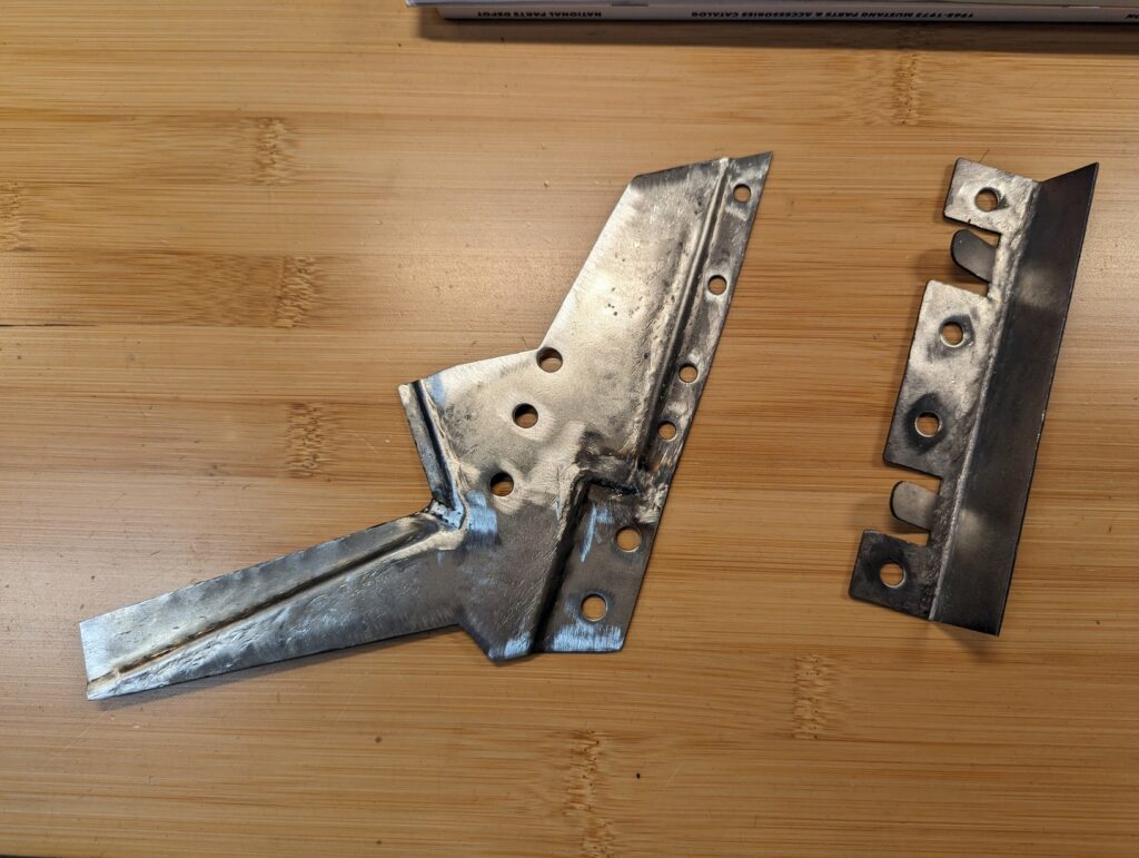 The laser cutting supplier wasn’t able to do the bends on this piece due to the limited space between the compound bends and the various angles of the flanges.