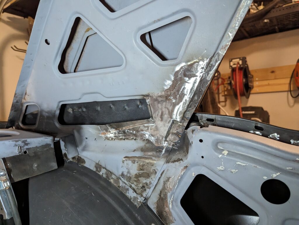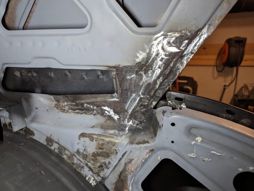 After some grinding I was pretty happy with how it turned out. It’s not a perfect match for stock but it’s reasonably close and will never be visible anyway thanks to the headliner covering the entirety of the C pillars.
