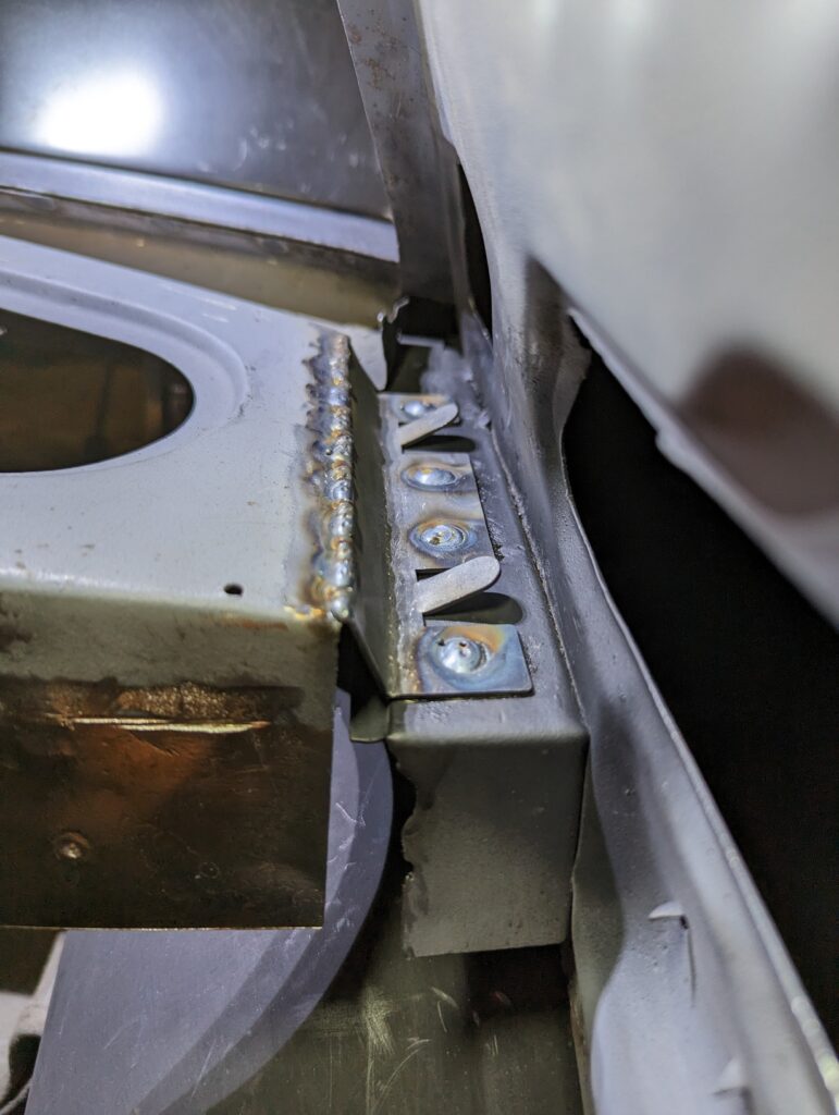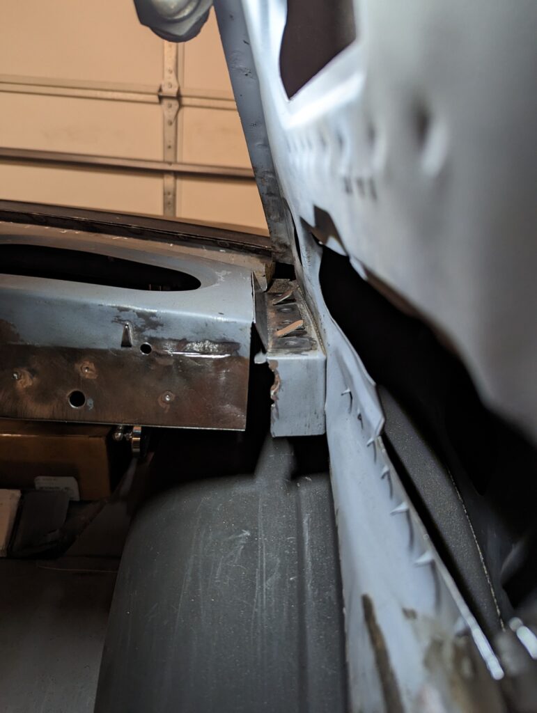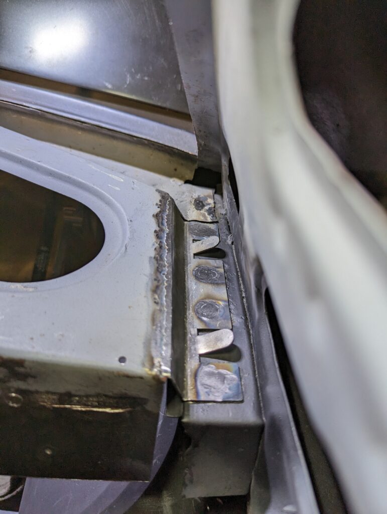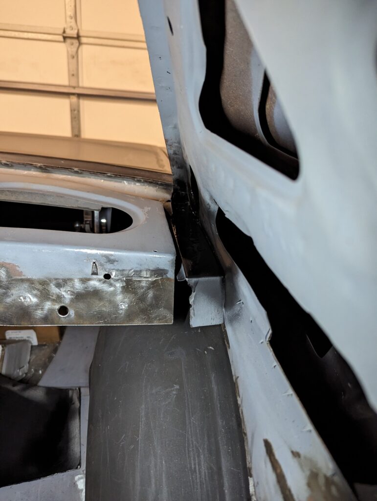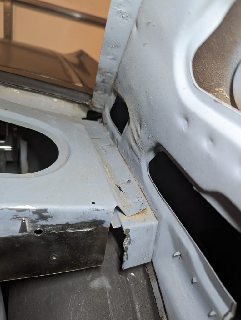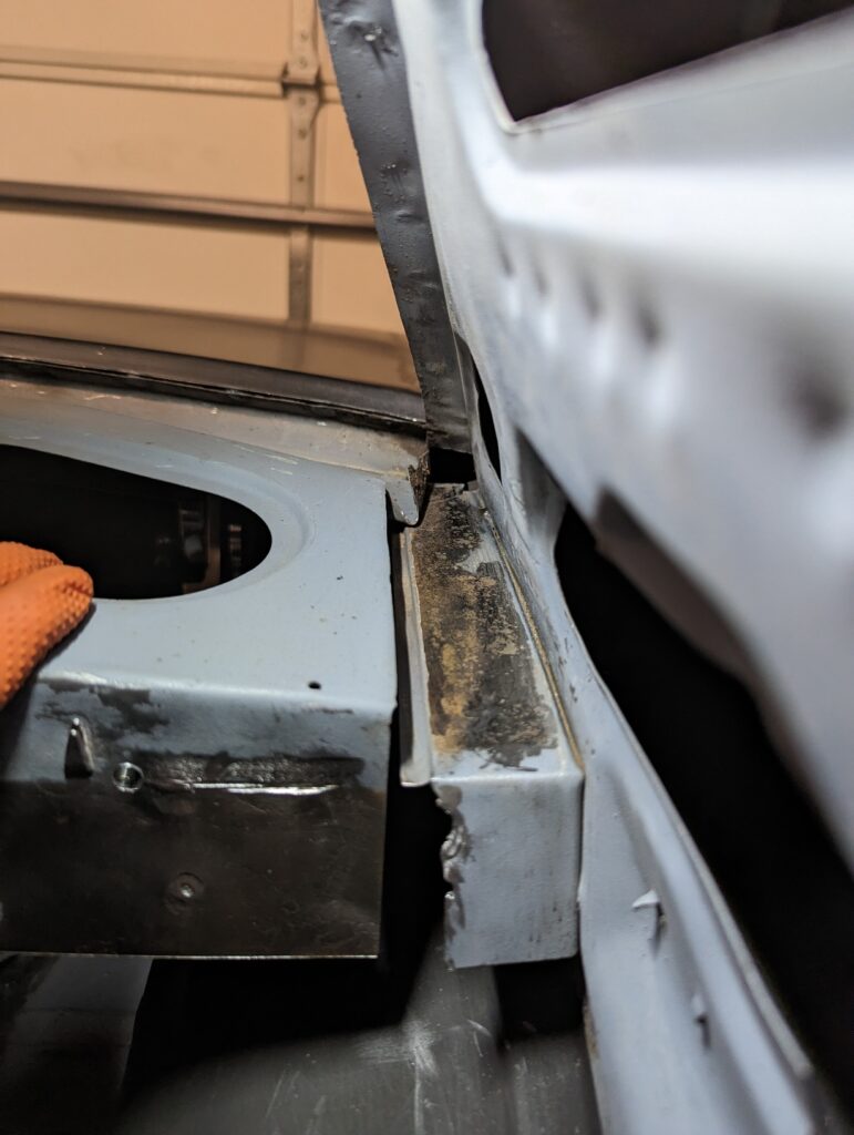 Before welding anything I sprayed both the back of the patch and the C pillar mounting surface with rust encapsulator.