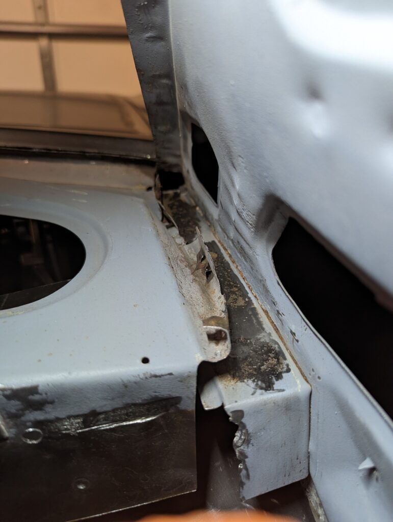The package shelf was pretty clean save for the mounting flange to the driver’s side C pillar which was permeated with rust damage.