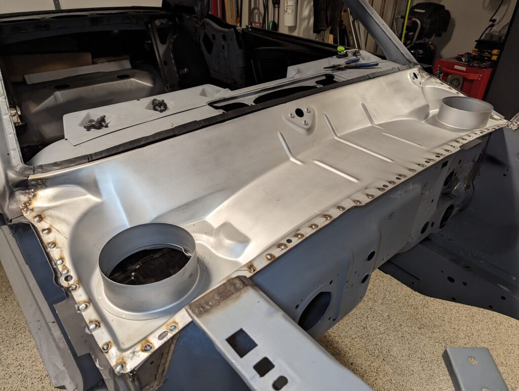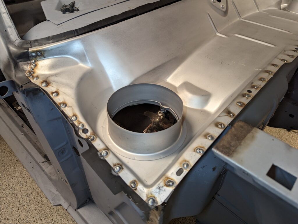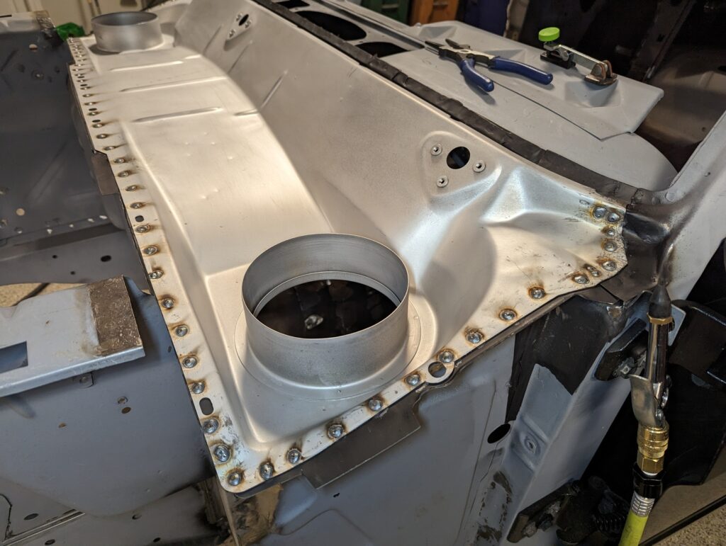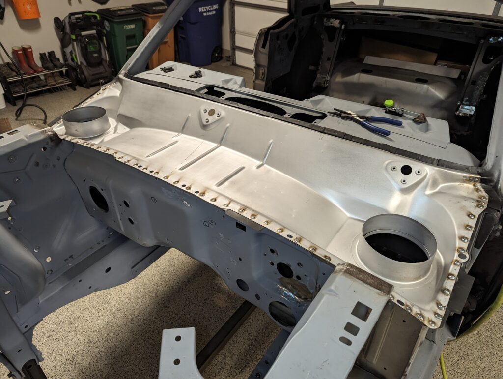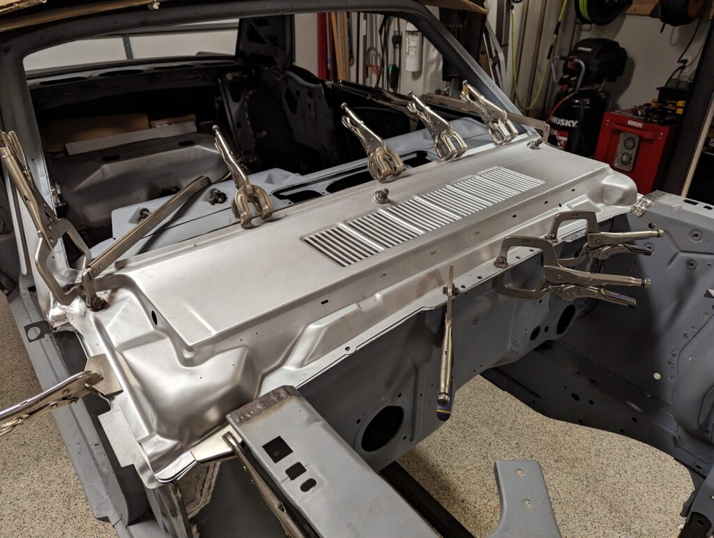 The base of the A pillars is where the reproduction cowl didn’t quite align perfectly, it took some creative clamping and extra sheet metal screws to pull everything flush for welding.